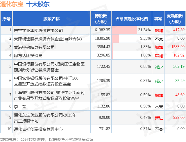 根据通化东宝2025年三季报公布的十大股东详情如下: